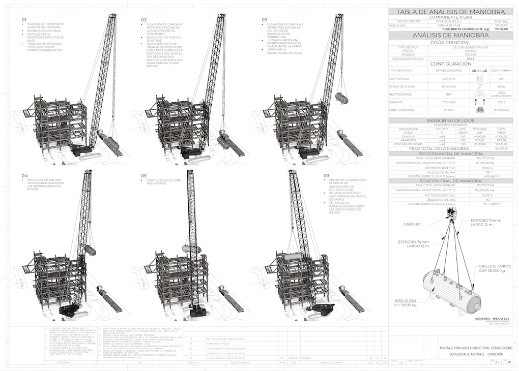 ESTANDARIZACIÓN DE IZAJES Servicio Estandarización de izajes Ofrecemos el servicio de estandarización de maniobras de izaje por medio de documentos técnicos y gráficos, para actividades de mantenimiento y montajes repetitivos, realizando el análisis de aparejos, equipos y condiciones de seguridad a tomar en cuenta en la ejecución de los trabajos. De esta manera se optimizan los tiempos de respuesta y planificación ante actividades como paradas de planta o mantenimientos de infraestructura.